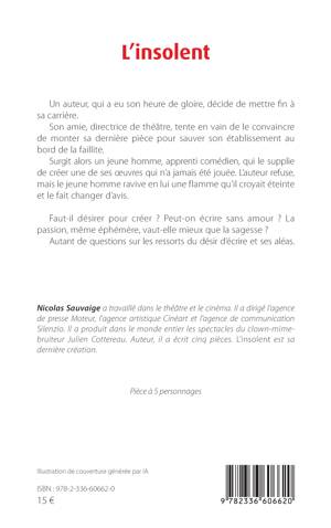 Un auteur, qui a eu son heure de gloire, décide de mettre fin à sa carrière. Son amie, directrice de théâtre, tente en vain de le convaincre de monter sa dernière pièce pour sauver son établissement au bord de la faillite. Surgit alors un jeune homme, apprenti comédien, qui le supplie de créer une de ses oeuvres qui n'a jamais été jouée. L'auteur refuse, mais le jeune homme ravive en lui une flamme qu'il croyait éteinte et le fait changer d'avis. Faut-il désirer pour créer ? Peut-on écrire sans amour ? La passion, même éphémère, vaut-elle mieux que la sagesse ? Autant de questions sur les ressorts du désir d'écrire et ses aléas.
