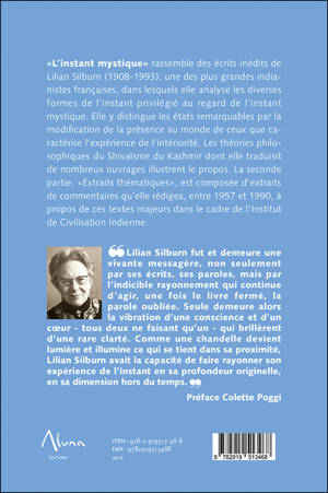 "L'instant mystique" rassemble des écrits inédits de Lilian Silburn (1908-1993), une des plus grandes indianistes françaises, dans lesquels elle analyse les diverses formes de l'instant privilégié au regard de l'instant mystique. Elle y distingue les états remarquables par la modification de la présence au monde de ceux que caractérise l'expérience de l'intériorité. Les théories philosophiques du Shivaïsme du Kashmir dont elle traduisit de nombreux ouvrages illustrent le propos. La seconde partie, "Extraits thématiques", est composée d'extraits de commentaires qu'elle rédigea, entre 1957 et 1990, à propos de ces textes majeurs dans le cadre de l'Institut de Civilisation Indienne.
