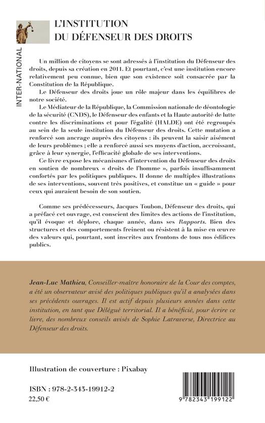 Le Défenseur des droits joue un rôle majeur dans les équilibres de notre société. Le Médiateur de la République, la Commission nationale de déontologie de la sécurité (CNDS), le Défenseur des enfants et la Haute autorité de lutte contre les discriminations et pour l'égalité (HALDE) ont été regroupés au sein de la seule institution du Défenseur des droits. Cette mutation a renforcé son ancrage auprès des citoyens et a consolidé ses moyens d'action, accroissant, grâce à leur synergie, l'efficacité globale de ses interventions. Ce livre expose les mécanismes d'intervention du Défenseur des droits en soutien de nombreux « droits de l'homme », parfois insuffisamment confortés par les politiques publiques. Il donne de multiples exemples et constitue un « guide » pour ceux qui auraient besoin de son soutien.