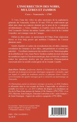 À Coro, l'une des villes les plus anciennes de la capitainerie générale du Venezuela, éclata le 10 mai 1795 un soulèvement qui allait unir, dans un contexte dominé par la peur de la « contagion révolutionnaire », Noirs, Mulâtres et Zambos. Défait en deux jours, ce mouvement fit l'objet d'une répression féroce et d'un long procès qui mobilisa l'Audience de Caracas plusieurs mois. Motifs, finalités et cadres de revendication des révoltés, rumeurs, circulation des hommes et des idées, interprétations et actions des autorités... Excellent connaisseur des archives et de l'historiographie de la rébellion de Coro, Jean-Pierre Tardieu conduit un récit éclairant les nombreux aspects d'un mouvement qui, dans sa brièveté, condense toutes les questions posées par les processus d'émancipation traversant alors la société esclavagiste de la Grande Caraïbe.