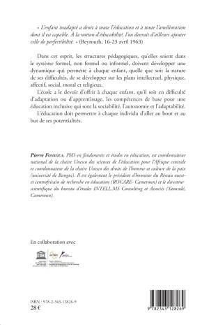 Les structures pédagogiques, qu'elles soient dans un système formel, non formel ou informel, doivent développer une dynamique qui permette à chaque enfant de se développer sur le plan intellectuel, physique, affectif, social, moral et religieux. Qu'il soit en difficulté d'adaptation ou d'apprentissage, l'école a le devoir d'offrir les compétences de base pour une éducation inclusive qui sont la sociabilité, l'autonomie et l'adaptabilité.