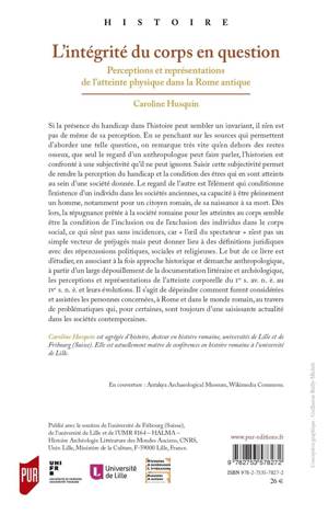Si la présence du handicap dans l'histoire peut sembler un invariant, il n'en est pas de même de sa perception. En se penchant sur les sources qui permettent d'aborder une telle question, on remarque très vite qu'en dehors des restes osseux, que seul le regard d'un anthropologue peut faire parler, l'historien est confronté à une subjectivité qu'il ne peut ignorer. Saisir cette subjectivité permet de rendre la perception du handicap et la condition des êtres qui en sont atteints au sein d'une société donnée. Le regard de l'autre est l'élément qui conditionne l'existence d'un individu dans les sociétés anciennes, sa capacité à être pleinement un homme, notamment pour un citoyen romain, de sa naissance à sa mort. Dès lors, la répugnance prêtée à la société romaine pour les atteintes au corps semble être la condition de l'inclusion ou de l'exclusion des individus dans le corps social, ce qui n'est pas sans incidences, car "l'oeil du spectateur" n'est pas un simple vecteur de préjugés mais peut donner lieu à des définitions juridiques avec des répercussions politiques, sociales et religieuses. Le but de ce livre est d'étudier, en associant à la fois approche historique et démarche anthropologique, à partir d'un large dépouillement de la documentation littéraire et archéologique, les perceptions et représentations de l'atteinte corporelle du Ier s. av. n. è. au IVe s. n. è. et leurs évolutions. Il s'agit de dépeindre comment furent considérées et assistées les personnes concernées, à Rome et dans le monde romain, au travers de problématiques qui, pour certaines, sont toujours d'une saisissante actualité dans les sociétés contemporaines.