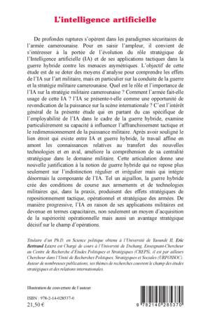 De profondes ruptures s'opèrent dans les paradigmes sécuritaires de l'armée camerounaise. Pour en saisir l'ampleur, il convient de s'intéresser à la portée de l'évolution du rôle stratégique de l'Intelligence artificielle (IA) et de ses applications tactiques dans la guerre hybride contre les menaces asymétriques. L'objectif de cette étude est de se doter des moyens d'analyse pour comprendre les effets de l'IA sur l'art militaire, mais en particulier sur la conduite de la guerre et la stratégie militaire camerounaise. Quel est le rôle et l'importance de l'IA sur la stratégie militaire camerounaise ? Comment l'armée fait-elle usage de cette IA ? l'IA se présente-t-elle comme une opportunité de revendication de la puissance sur la scène internationale ?