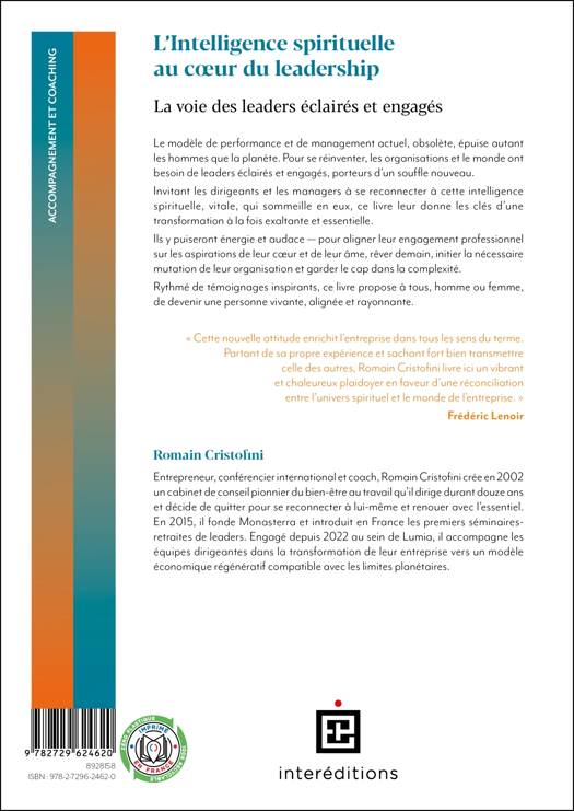 « Cette nouvelle attitude enrichit l’entreprise dans tous les sens du terme. Partant de sa propre expérience et sachant fort bien transmettre celle des autres, Romain Cristofini livre ici un vibrant et chaleureux plaidoyer en faveur d’une réconciliation entre l’univers spirituel et le monde de l’entreprise. »