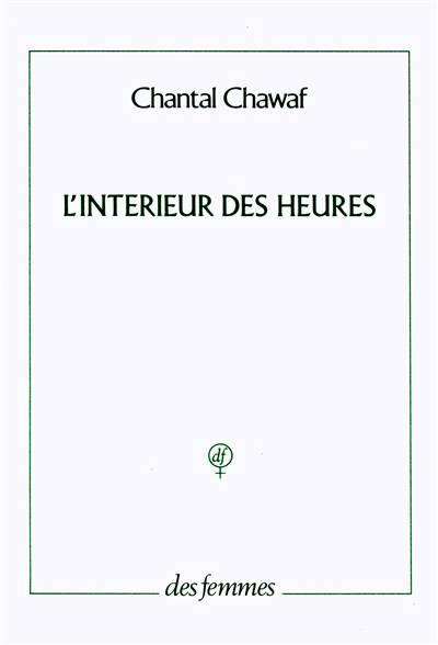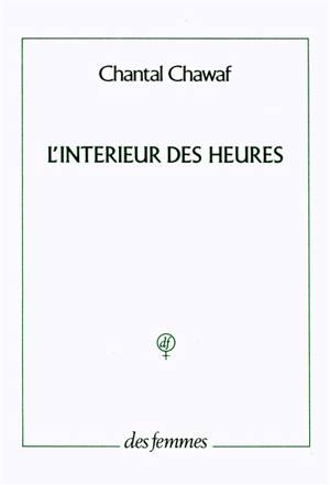 Dans "L'Intérieur des heures", Chantal Chawaf continue cette exploration du corps, du tissu du vivant, des zones de plus en plus profondes. Elle dit la jouissance, le désir de vivre et le désir tout court, souvent proche de l'angoisse. Cet ouvrage nous montre la France de la fin des années 1980. Une banlieue un peu triste, deux mondes qui s'ignorent, les pauvres, immigrés, oubliés de l'Histoire, et puis, de l'autre côté de la plaine, les riches avec leurs clubs et leurs fêtes. Mais chez les uns comme chez les autres, la femme est bien souvent en morceaux.