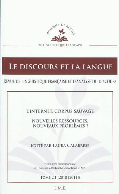 Introduction : Laura Calabrese / Les corpus électroniques en sciences du langage : un eldorado ? Isabelle Pierozak / Analyse du discours, corpus internet et recherche qualitative : objets d'étude et objets de recherche : Florimond Rakotonoelina / Sur l'internet, personne ne sait que tu es un linguiste : problèmes méthodologiques et éthiques de l'analyse des discours médiatisés par ordinateur : Michel Marcoccia...