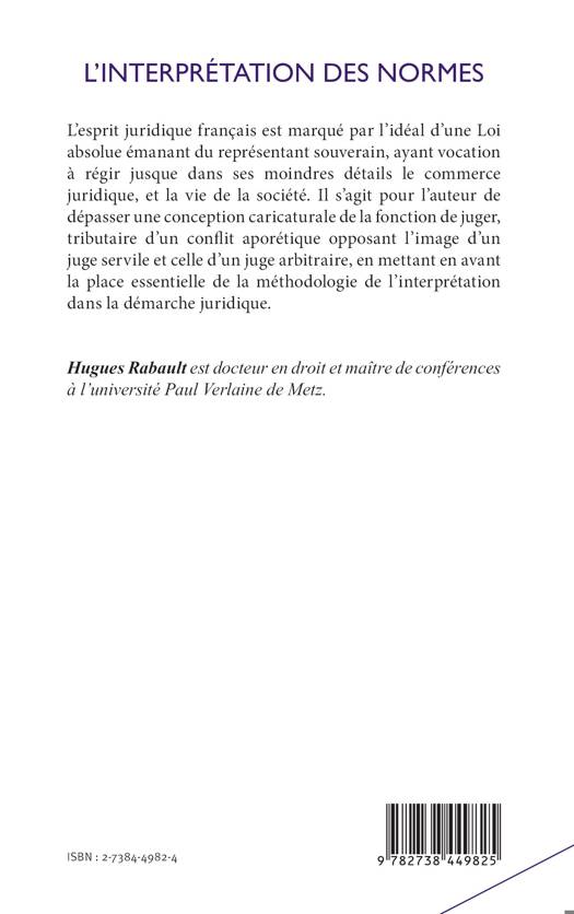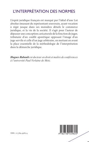 L'esprit juridique français est marqué par l'idéal d'une Loi absolue, émanant du représentant souverain, ayant vocation à régir, jusque dans ses moindres détails, le commerce juridique, et, par là, la vie de la société. Il s'agit pour l'auteur de dépasser une conception caricaturale de la fonction de juger, tributaire d'un conflit aporétique opposant l'image d'un juge servile et celle d'un juge arbitraire, en mettant en avant la place essentielle de la méthodologie de l'interprétation dans la démarche juridique.