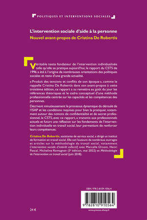 Véritable texte fondateur de l’intervention individualisée telle qu’elle se pratique aujourd’hui, le rapport du CSTS de 1996 a été à l’origine de nombreuses orientations des politiques sociales et reste d’une grande actualité. « Produit des tensions et conflits de son époque », comme le rappelle Cristina De Robertis dans son avant-propos à cette troisième édition, ce rapport a su remettre au goût du jour les références théoriques et le cadre conceptuel d’une méthode professionnelle centrée sur les capacités et les compétences des personnes. Décrivant minutieusement le processus dynamique du déroulé de l’ISAP et les conditions requises pour bien la pratiquer, notamment autour des notions de confidentialité et de secret professionnel, le CSTS, avec ce rapport, a transmis aux professionnels actuels et futurs une réflexion sur les fondements de l’intervention individuelle en travail social, leur permettant de renforcer leurs compétences.