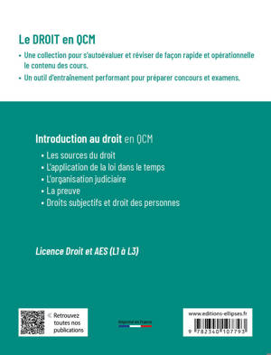 L’objectif de la collection « Le droit en QCM » est de pouvoir s’autoévaluer et réviser de façon rapide et opérationnelle le contenu des cours. Pensés comme un outil d’entraînement performant, ces ouvrages sont idéals pour préparer les concours et les examens.