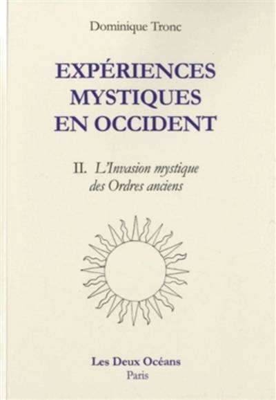 J'arpente depuis longtemps les allées de la mystique et j'ai souvent regretté de ne pas disposer d'un guide. Parvenu à l'âge mûr, je public ce travail destiné à tous ceux qui, sans disposer de carte ni d'orientation, recherchent les témoignages essentiels et eux seuls, et particulièrement ceux qui furent rédigés dans notre langue. Dans cet itinéraire ou pèlerinage je ne cite que les témoignages d'expérience du divin en évitant toute littérature dérivée . les influences personnelles exercées par des "aînés" expérimentés sur leurs "cadets" sont soulignées. Le volume Expériences mystiques en Occident I. Des Origines à la Renaissance introduisait aux principales figures de la tradition mystique chrétienne. Il constitue une préparation aux volumes II, III et IV de notre entreprise. Le présent volume II. L'Invasion mystique des Ordres anciens s'attache à la renaissance mystique qui se produisit en France au début du XVIIe siècle. Tandis que la vie érémitique ou "béguine" anime toujours de nouvelles figures, la rénovation est exemplaire chez des moines et des bénédictines, dans les deux carmels de la réforme dite de "Touraine ou d'origine espagnole, chez des franciscains de trois branches : capucins, récollets, tiers ordre régulier. Nous nous attachons aux seuls mystiques dont on découvrira ici de hautes figures cachées.. leurs évocations, aux relations qui les unissent, nous associons un florilège conséquent constitué à partir de leurs écrits. Ces traces exemplaires sont en effet rarement disponibles de nos jours.