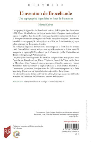 La topographie légendaire de Brocéliande en forêt de Paimpont date des années 1820. OEuvre d’érudits locaux qui dotent leur territoire d’un passé glorieux, elle est reprise et amplifiée dans des cercles régionaux et parisiens qui aspirent à donner à la Bretagne une histoire prestigieuse sur fond d’antiquités celtiques. Le tourisme consolide cette topographie qui acquiert une réalité par des sites et des paysages reliés entre eux par des circuits de visite. En restaurant l’église de Tréhorenteuc aux marges de la forêt dans les années 1940, l’abbé Gillard invente un lieu dans lequel Brocéliande se donne à voir. Il réorganise la topographie légendaire à partir d’un centre qui lui faisait défaut et de son prolongement, le Val sans retour. Les politiques d’aménagement du territoire intègrent cette topographie sous l’appellation Brocéliande en Ille-et-Vilaine et Pays de la Table ronde dans le Morbihan. Mais l’image de marque promue est fragile à cause des risques d’incendies dans un contexte d’augmentation de la fréquentation touristique. Les tensions qui se font alors jour entre les différentes conceptions de la forêt légendaire débouchent sur des valorisations diversifiées du territoire. En adoptant un point de vue centré sur les acteurs, l’ouvrage analyse ces différents moments de l’invention de Brocéliande en forêt de Paimpont.