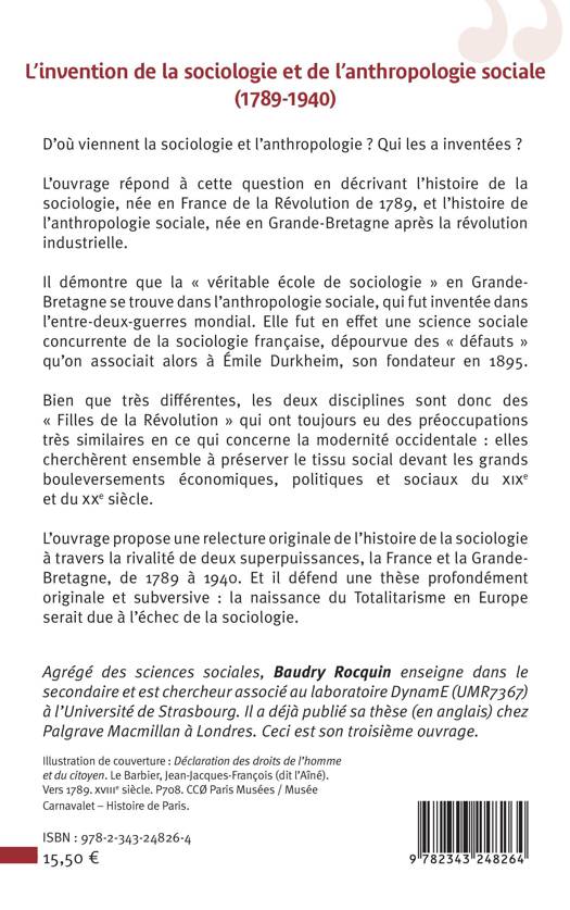D'où viennent la sociologie et l'anthropologie ? L'ouvrage répond à cette question en décrivant l'histoire de la sociologie. L'ouvrage propose une relecture originale de l'histoire de la sociologie à travers la rivalité de deux superpuissances, la France et la Grande-Bretagne, de 1789 à 1940. Et il défend une thèse profondément originale et subversive : la naissance du Totalitarisme en Europe serait due à l'échec de la sociologie.