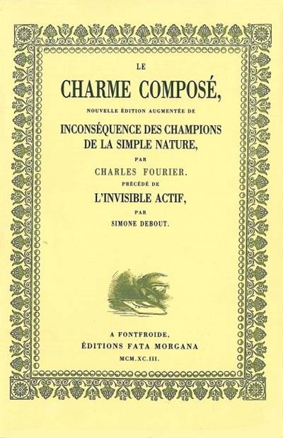 précédé de Inconséquence des champions de la simple nature. “Le Charme composé constitue la douzième passion, la plus noble de toutes, et d'autant plus digne de nos études qu’on peut rapporter toute la théorie d’équilibre passionnel à la seule composite.”