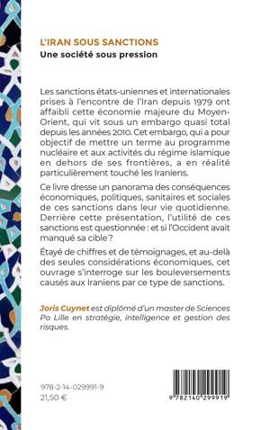 Les sanctions états-uniennes et internationales prises à l'encontre de l'Iran depuis 1979 ont affaibli cette économie majeure du Moyen-Orient, qui vit sous un embargo quasi total depuis les années 2010. Cet embargo, qui a pour objectif de mettre un terme au programme nucléaire et aux activités du régime islamique en dehors de ses frontières, a en réalité particulièrement touché les Iraniens. Ce livre dresse un panorama des conséquences économiques, politiques, sanitaires et sociales de ces sanctions dans leur vie quotidienne. Derrière cette présentation, l'utilité de ces sanctions est questionnée: et si l'Occident avait manqué sa cible ? Étayé de chiffres et de témoignages, et au-delà des seules considérations économiques, cet ouvrage s'interroge sur les bouleversements causés aux Iraniens par ce type de sanctions.