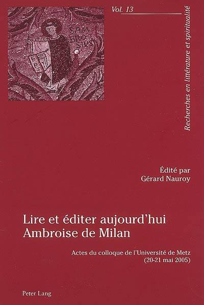 Lire, éditer, traduire et comprendre aujourd'hui l'oeuvre, réputée difficile, d'un Père de l'Église latine comme Ambroise de Milan, tel était l'objet du colloque organisé à Metz en mai 2005 sous les auspices de l'Institut des « Sources Chrétiennes » pour préciser le cadre d'une nouvelle édition de l'oeuvre du pasteur milanais. Les actes réunissent des contributions de quelques-uns des meilleurs spécialistes français et étrangers d'Ambroise. Selon des démarches complémentaires, réflexion sur l'actualité de la pensée et de l'herméneutique ou approches plus méthodologiques et techniques, les textes ici réunis constituent une propédeutique à une lecture renouvelée de l'oeuvre de l'évêque de Milan.