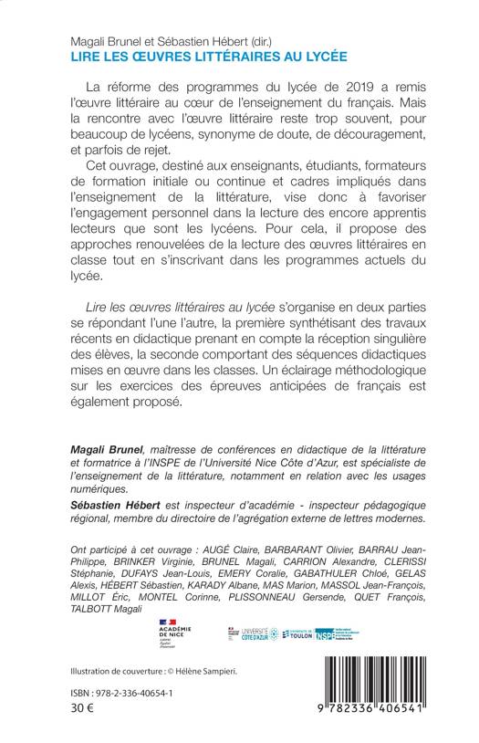 La réforme des programmes du lycée de 2019 a remis l’œuvre littéraire au cœur de l’enseignement du français. Mais la rencontre avec l’œuvre littéraire reste trop souvent, pour beaucoup de lycéens, synonyme de doute, de découragement, et parfois de rejet. Cet ouvrage, destiné aux enseignants, étudiants, formateurs de formation initiale ou continue et cadres impliqués dans l’enseignement de la littérature, vise donc à favoriser l’engagement personnel dans la lecture des encore apprentis lecteurs que sont les lycéens. Pour cela, il propose des approches renouvelées de la lecture des œuvres littéraires en classe tout en s’inscrivant dans les programmes actuels du lycée. Lire les œuvres littéraires au lycée s’organise en deux parties se répondant l’une l’autre, la première synthétisant des travaux récents en didactique prenant en compte la réception singulière des élèves, la seconde comportant des séquences didactiques mises en œuvre dans les classes. Un éclairage méthodologique sur les exercices des épreuves anticipées de français est également proposé.
