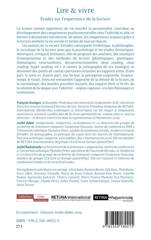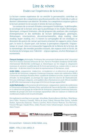 La lecture comme expérience de vie enrichit la personnalité, contribue au développement des compétences psychosensorielles chez l'individu et aide ce dernier à déterminer son identité. De même, les compétences acquises grâce à la lecture animent la vie sociale et intime de tout un chacun. À travers la cartographie des stratégies d'interprétation et des méthodes de lecture se dessinent des points de contact pertinents éclairant les rapports entre le texte et son lecteur, la perception corporelle, l'espace-temps ou le visuel. Ainsi est renouvelée l'approche de la théorie de la fiction, de la narratologie, des mondes possibles textuels, des espaces réels et fictifs, de la relation de la langue avec l'identité.