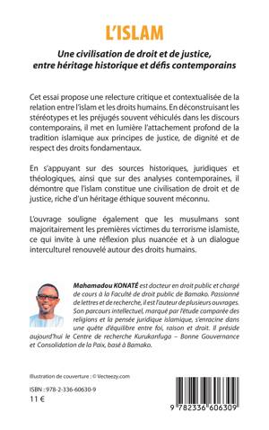 Cet essai propose une relecture critique et contextualisée de la relation entre l'islam et les droits humains. En déconstruisant les stéréotypes et les préjugés souvent véhiculés dans les discours contemporains, il met en lumière l'attachement profond de la tradition islamique aux principes de justice, de dignité et de respect des droits fondamentaux. En s'appuyant sur des sources historiques, juridiques et théologiques, ainsi que sur des analyses contemporaines, il démontre que l'islam constitue une civilisation de droit et de justice, riche d'un héritage éthique souvent méconnu. L'ouvrage souligne également que les musulmans sont majoritairement les premières victimes du terrorisme islamiste, ce qui invite à une réflexion plus nuancée et à un dialogue interculturel renouvelé autour des droits humains.