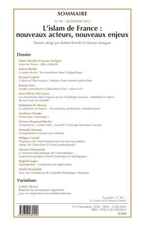 Les textes proposés dans ce dossier ne prétendent pas fournir un tableau exhaustif des dynamiques de ou autour de l'islam de France, mais simplement apporter des éléments d'analyse au travail de la raison. Au sommaire notamment : La porte étroite : les musulmans dans la République ; Leaders musulmans et fabrication d'un "islam civil" ; Le salafisme en France ; Féminisme-s islamiques-s ; La transversalité politique de l'islamophobie, ...