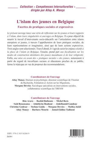 Le présent ouvrage lance une série de réflexions sur les jeunes et leurs rapports à l'islam, dans leurs singularités et ancrages en Belgique. Il a pour objectif de nourrir le travail d'intervenants socio-éducatifs sur l'articulation entre islams européens et jeunes, à travers l'appréhension de leurs pratiques sociales, de leurs représentations et imaginaires, ainsi que de leurs actions expressives. Trois angles sont sélectionnés. Tout d'abord, il s'agit de saisir les enjeux relatifs à la place de l'islam en Belgique. Ensuite, prend part une focalisation sur les modes de construction identitaire des jeunes musulmans et de leur religiosité. Enfin, une mise en avant des « pratiques sociales » des jeunes, notamment à partir du regard de travailleurs sociaux et éducateurs proches de ce public, ferme le triptyque en vue de proposer des recommandations.