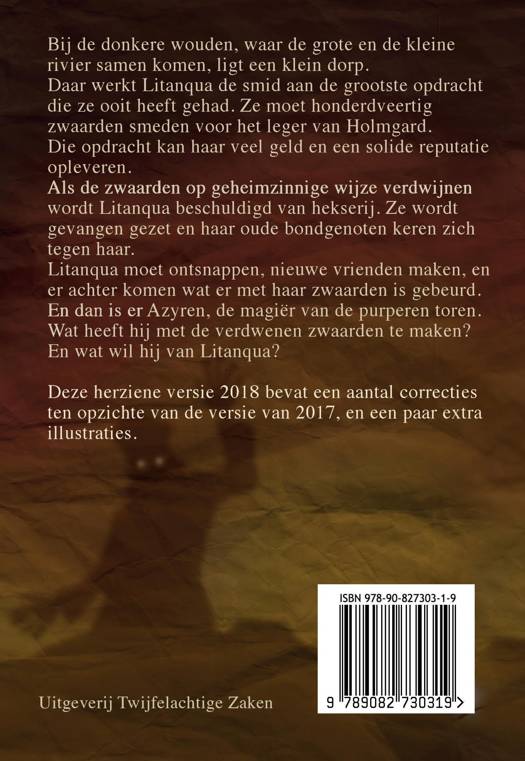 Bij de donkere wouden, waar de grote en de kleine rivier samen komen, ligt een klein dorp. Daar werkt Litanqua de smid aan de grootste opdracht die ze ooit heeft gehad. Ze moet honderdveertig zwaarden smeden voor het leger van Holmgard. Die opdracht kan haar veel geld en een solide reputatie opleveren. Als de zwaarden op geheimzinnige wijze verdwijnen wordt Litanqua beschuldigd van hekserij. Ze wordt gevangen gezet en haar oude bondgenoten keren zich tegen haar. Litanqua moet ontsnappen, nieuwe vrienden maken, en er achter komen wat er met haar zwaarden is gebeurd. En dan is er Azyren, de magiër van de purperen toren. Wat heeft hij met de verdwenen zwaarden te maken? En wat wil hij van Litanqua?
