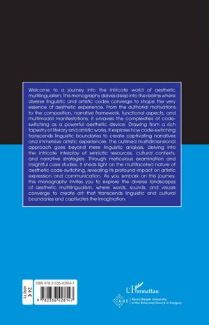 Welcome to a journey into the intricate world of aesthetic multilingualism. This monography delves deep into the realms where diverse linguistic and artistic codes converge to shape the very essence of aesthetic experience. From the authorial motivations to the composition, narrative framework, functional aspects, and multimodal manifestations, it unravels the complexities of code-switching as a powerful aesthetic device. Drawing from a rich tapestry of literary and artistic works, it explores how code-switching transcends linguistic boundaries to create captivating narratives and immersive artistic experiences. The outlined multidimensional approach goes beyond mere linguistic analysis, delving into the intricate interplay of semiotic resources, cultural contexts, and narrative strategies. Through meticulous examination and insightful case studies, it sheds light on the multifaceted nature of aesthetic code-switching, revealing its profound impact on artistic expression and communication. As you embark on this journey, this monography invites you to explore the diverse landscapes of aesthetic multilingualism, where words, sounds, and visuals converge to create art that transcends linguistic and cultural boundaries and captivates the imagination.