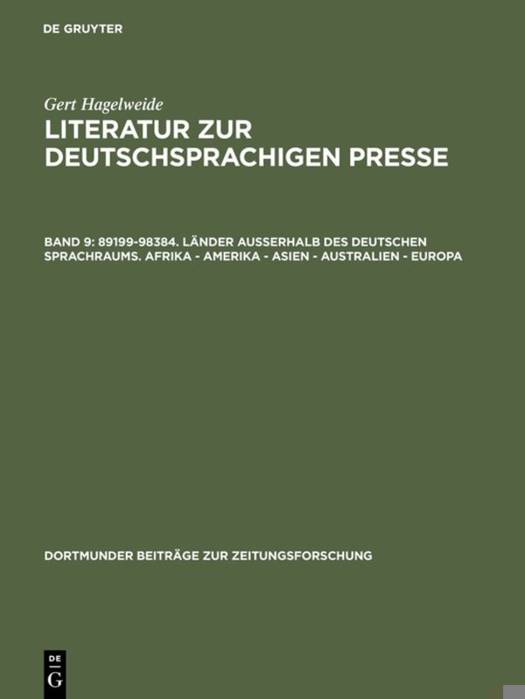 Literatur zur deutschsprachigen Presse, Band 9, 89199-98384. Länder außerhalb des deutschen Sprachraums. Afrika - Amerika - Asien - Australien - Europa