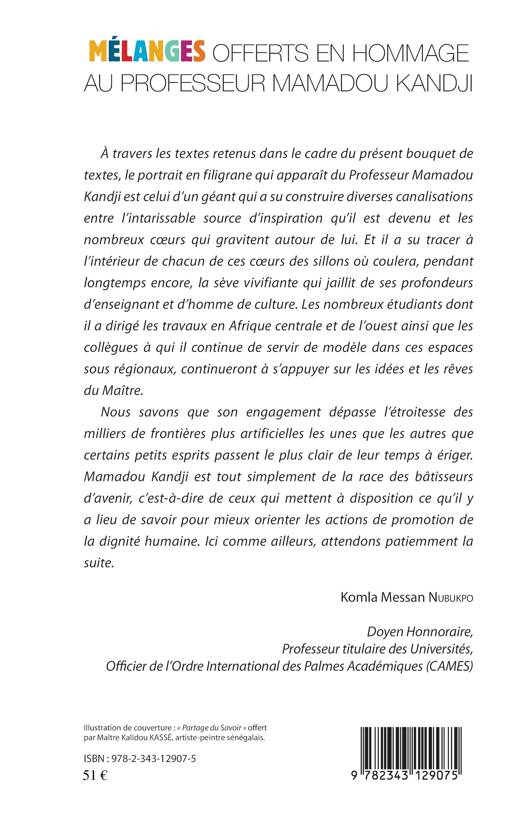 Cet ouvrage collectif rend hommage au professeur Mamadou Kandji, dont les étudiants s'accordent à dire "qu'auprès de lui, ce sont de vraies leçons de vie qu'on apprend". Ce militant de l'éducation et de la formation continue de publier livres et monographies, à animer des séminaires, à assurer des cours, à diriger des thèses, à participer à des jurys de soutenance de mémoires et de thèses, ou à des assises sur les réformes de l'enseignement supérieur.