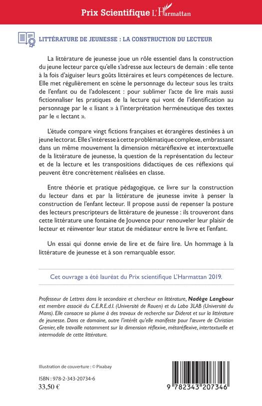 La littérature de jeunesse joue un rôle essentiel dans la construction du jeune lecteur parce qu'elle s'adresse aux lecteurs de demain : elle tente à la fois d'aiguiser leurs goûts littéraires et leurs compétences de lecture. Elle met régulièrement en scène le personnage du lecteur sous les traits de l'enfant ou de l'adolescent : pour sublimer l'acte de lire mais aussi fictionnaliser les pratiques de la lecture qui vont de l'identification au personnage par le « lisant » à l'interprétation herméneutique des textes par le « lectant ». L'étude compare vingt fictions françaises et étrangères destinées à un jeune lectorat. Cet ouvrage a été lauréat du Prix scientifique L'Harmattan 2019.