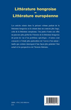 Les articles réunis dans le présent volume parlent de la littérature hongroise en la situant dans un contexte plus large, celui de la littérature européenne. Une partie d'entre eux offre un parcours plus global de l'histoire de la littérature hongroise du point de vue d'un problème spécifique ; d'autres sont consacrés à l'étude plus particulière de l'oeuvre d'un auteur ; tandis que certains interrogent d'une façon plus générale l'état actuel et les perspectives de l'histoire littéraire.