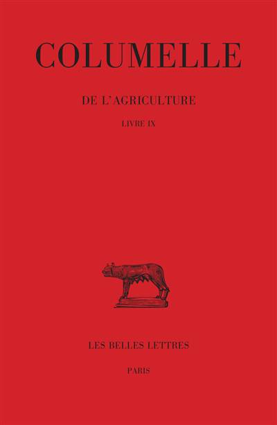 Traite des parcs à gibier en un chapitre : emplacement, clôture, nourriture des animaux, espèces à élever. Mais, l'essentiel du livre porte sur les ruchers et les abeilles et débute, pour cette partie, par un état de la question en indiquant les principaux prédecesseurs de Columelle dans le domaine de l'apiculture, Hygin, Celse et Virgile.