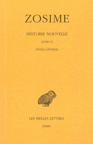 Le livre VI (et dernier) de l'Histoire nouvelle de Zosime est tres bref, car l'oeuvre est inachevee. Il narre les evenements en Italie de la fin 409 et de la premiere moitie de 410, et s'interrompt brusquement quelques semaines avant la prise de Rome par Alaric. Il contient en outre la digression sur les evenements en Bretagne, en Gaule et en Espagne a l'epoque de l'usurpateur Constantin III. Le volume est complete par dix appendices, le premier contenant un dossier de textes paralleles, le second un panorama des etudes consacrees a Zosime durant les annees 1970-19 et par deux index, l'un des noms propres, l'autre, bilingue latin-grec, groupant les termes relatifs aux institutions civiles et militaires et les termes latins translitteres en grec. Cet ouvrage complete une serie de cinq tomes, dont le premier a paru en 1971, et qui contient l'ensemble de l'oeuvre de Zosime.