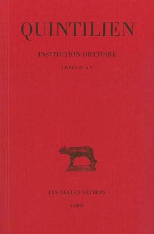 L'Institution oratoire (De institutione oratoria) rassemble l'expérience de Quintilien sur l'éloquence. Il traite de l'instruction élémentaire, de l'inspiration et de la manière d'agencer la matière, de l'exprimer et de la mémoriser, de l'exposé, de l'orateur et du discours.