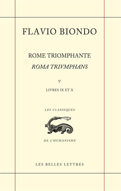 Le choix de réunir dans ce volume final les livres IX et X de Rome triomphante, le premier dédié à la vie privée des Romains, le second culminant dans la présentation « aux regards ,et aux esprits » d’une vision de « la Ville de Rome florissante et triomphante telle que souhaitait la voir saint Augustin » permet de saisir les lignes de force qui confèrent à l’immensum opus de Biondo la dynamique d’un ensemble qui intègre une somme sur les institutions et les antiquités romaines dans la perspective ontologique d’un triomphe idéal et virtuel.