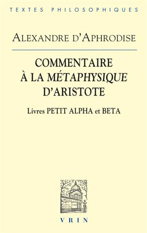 Parmi les commentateurs d'Aristote, Alexandre d'Aphrodise (IIe -IIIe siecles) est, depuis l'Antiquite, tenu pour l'Exegete par excellence. Titulaire de la chaire imperiale de philosophie peripateticienne a Athenes, il a redige nombre de commentaires aux oeuvres d'Aristote. Son commentaire a la Metaphysique a servi a la fois de modele et de source a la tradition ulterieure, des Neoplatoniciens grecs a la pensee medievale byzantine, arabe et latine. Le livre Petit alpha de la Metaphysique lui donne l'occasion de revenir sur le projet general de la sagesse ou philosophie premiere, qui guide l'ouvrage en son entier. Aux interpretes anterieurs, qui ont doute de l'authenticite et de l'appartenance du livre au traite, Alexandre repond qu'il ne peut etre que l'oeuvre d'Aristote. En organisant en un systeme determine les intuitions eparses de Petit Alpha, Alexandre transforme durablement la figure de la metaphysique aristotelicienne. Le livre Beta est, quant a lui, connu comme le livre des apories, ces difficultes qui se posent a tout metaphysicien. Le livre constitue a ce titre, du point de vue d'Alexandre, le vrai commencement de la Metaphysique. Alexandre voit dans ces apories un moment proprement exploratoire, formant, de ce fait, autant de manieres de mettre le metaphysicien en quete de la verite. La traduction ici presentee est la premiere donnee en francais de l'un des grands Commentaires lemmatiques qui ont fait la reputation d'Alexandre. Elle repose sur un texte grec revise en profondeur.