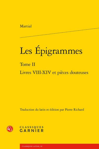 L'épigramme latin est une pièce courte, où quelques vers doivent susciter l'intérêt, étourdir par leur charge satirique et illustrer le génie du poète. Martial, qui excella dans cet exercice, fut un orfèvre du langage, travaillant et peaufinant chacun de ses vers, du plus pur au plus vulgaire, pour lui conférer une énergie et une force rares. Son écriture jubilatoire et choquante est faite de ruptures, mêlant à la délicatesse d'une formule la rudesse des images et de l'invective. Par son travail du style et des sonorités, par son art de la pointe satirique, Martial saisit son lecteur et l'entraîne au coeur de la Rome impériale, cette cité grandiose et sordide que l'on entend dans ses vers gronder, geindre et grouiller.