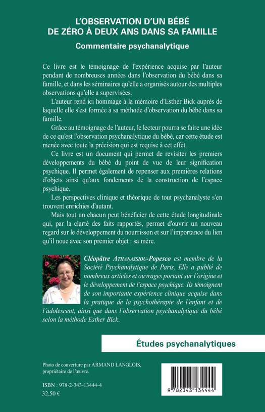 Cet ouvrage livre le témoignage par l'auteur de l'expérience acquise durant des années dans l'observation du bébé dans sa famille. L'auteur donne les clés qui permettent d'analyser les premiers développement du bébé d'un point de vue psychique, notamment grâce à l'importance du lien avec la mère. Le lecteur pourra, grâce à l'ouvrage, se faire une idée de l'observation psychanalytique de l'enfant.