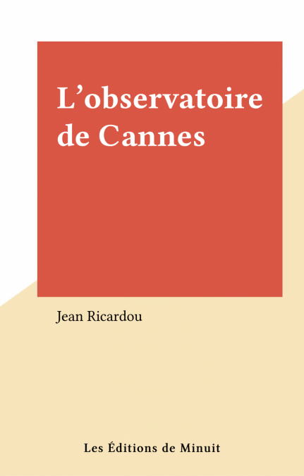 L'observatoire de Cannes est ce belvédère construit au sommet de l'une des collines qui entourent la ville. On y accède par un funiculaire. La lente ascension du véhicule qui, tout en rapprochant de l'objectif fixé, fait tomber successivement tous les obstacles à la vue et dénude, peu à peu, les divers secteurs du paysage, constitue la représentation assez exacte du mouvement du livre, ce progressif dévoilement, dans un train, sur la plage, parmi les mimosas ou dans la mer, du corps bronzé d'une jeune étrangère. Les différentes étapes de cette mise à nu d'un corps et de l'espace, situées en différents moments du temps, se recomposent selon la temporalité même de la lecture. Et, plutôt que par une juxtaposition linéaire, chacune de ces étapes s'insère dans le mouvement d'ensemble en le mimant, en le traduisant au niveau du moindre détail, comme un microcosme, par le jeu continuel des correspondances entre formes, nombres, couleurs, mouvements, gestes..., par les vertus de l'écriture même — mots à multiples ententes, semi-homonymes, ordre des vocables, rythme des propositions, etc. —, le rendant toujours présent. Le réel n'est ni le simple monde extérieur, ni le pur fantasme, mais la résultante de l'un et de l'autre, leur exacte confluence, qu'une écriture descriptive, telle qu'on vient de la définir, se propose de mettre à jour, à chaque instant.