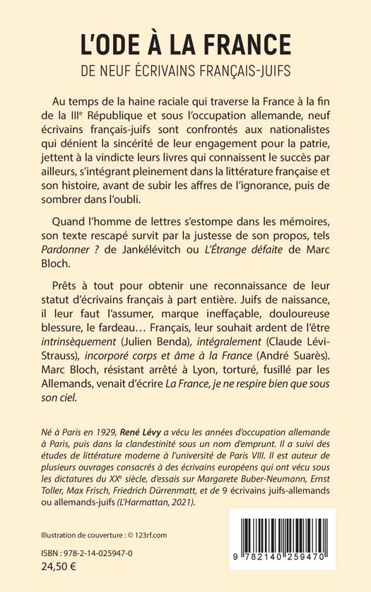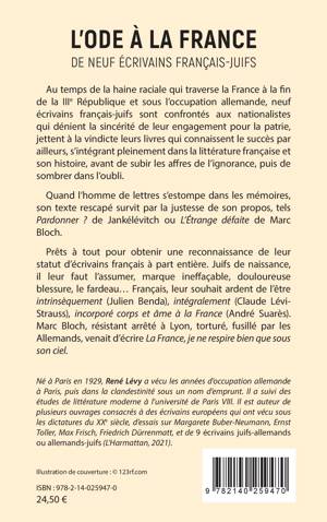 Au temps de la haine raciale qui traverse la France à la fin de la IIIe République et sous l'occupation allemande, neuf écrivains français-juifs sont confrontés aux nationalistes qui dénient la sincérité de leur engagement pour la patrie, jettent à la vindicte leurs livres qui connaissent le succès par ailleurs, s'intégrant pleinement dans la littérature française et son histoire, avant de subir les affres de l'ignorance, puis de sombrer dans l'oubli.