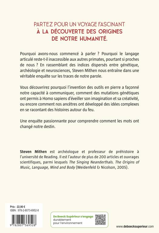 Pourquoi avons-nous commencé à parler ? Pourquoi le langage articulé reste-t-il inaccessible aux autres primates, pourtant si proches de nous ? En rassemblant des indices dispersés entre génétique, archéologie et neurosciences, Steven Mithen nous entraîne dans une véritable enquête sur les traces de notre parole.