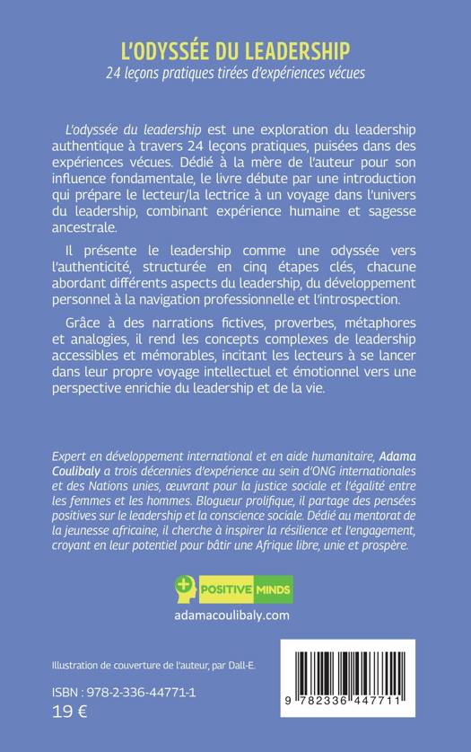 L’odyssée du leadership est une exploration du leadership authentique à travers 24 leçons pratiques, puisées dans des expériences vécues. Dédié à la mère de l’auteur pour son influence fondamentale, le livre débute par une introduction qui prépare le lecteur/la lectrice à un voyage dans l’univers du leadership, combinant expérience humaine et sagesse ancestrale.
