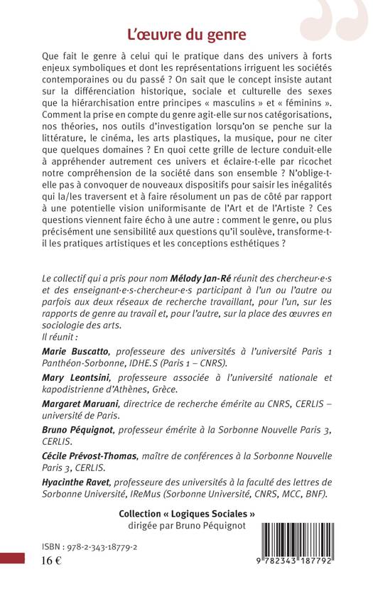 Que fait le genre à celui qui le pratique dans des univers à forts enjeux symboliques et dont les représentations irriguent les sociétés contemporaines ou du passé ? On sait que le concept insiste autant sur la différenciation historique, sociale et culturelle des sexes que la hiérarchisation entre principes "masculins" et "féminins". Comment la prise en compte du genre agit-elle sur nos catégorisations, nos théories, nos outils d'investigation lorsqu'on se penche sur la littérature, le cinéma, les arts plastiques, la musique, pour ne citer que quelques domaines ? En quoi cette grille de lecture conduit-elle à appréhender autrement cet univers et éclaire-t-elle par ricochet notre compréhension de la société dans son ensemble ?