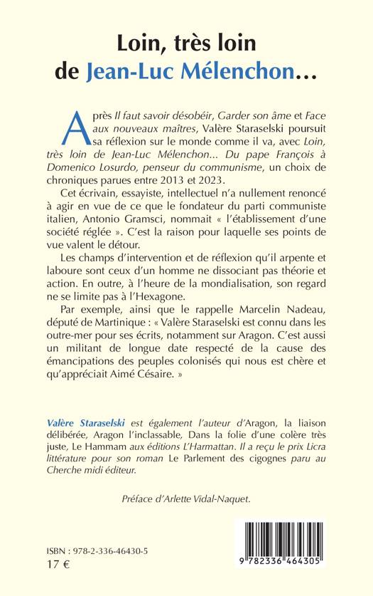 Après Il faut savoir désobéir, Garder son âme et Face aux nouveaux maîtres, Valère Staraselski poursuit sa réflexion sur le monde comme il va, avec un choix de chroniques parues entre 2013 et 2023. Cet écrivain, essayiste, intellectuel n'a nullement renoncé à agir en vue de ce que le fondateur du parti communiste italien, Antonio Gramsci, nommait l'établissement d'une société réglée . C'est la raison pour laquelle ses points de vue valent le détour. Les champs d'intervention et de réflexion qu'il arpente et laboure sont ceux d'un homme ne dissociant pas théorie et action. En outre, à l'heure de la mondialisation, son regard ne se limite pas à l'Hexagone. Par exemple, ainsi que le rappelle Marcelin Nadeau, député de Martinique: Valère Staraselski est connu dans les outre-mer pour ses écrits, notamment sur Aragon. C'est aussi un militant de longue date respecté de la cause des émancipations des peuples colonisés qui nous est chère et qu'appréciait Aimé Césaire.