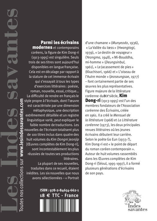 Parmi les écrivains modernes et contemporains coréens, la figure de Kim Dong-ri (1913-1995) est singulière. Seuls trois de ses titres sont aujourd’hui disponibles en langue française. Cela est en décalage par rapport à la stature de cet immense écrivain qui s’essayait à tous les types d’exercices littéraires : poésie, roman, nouvelle, essai, critique…