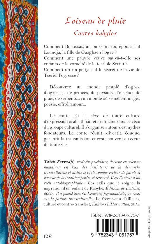 Comment Bu tissas, un puissant roi, épousa-t-il Loundja, la fille de l'Ouaghzen l'ogre ? Comment une pauvre veuve sauva-t-elle ses enfants de la voracité de la terrible Settut ? Comment un roi perça-t-il le secret de la vie de Tseriel l'ogresse ? Découvrez un monde peuplé d'ogres, d'ogresses, de princes, de paysans, d'oiseaux de pluie, de serpents...; un monde où se mêlent magie, poésie, effroi, amour...
