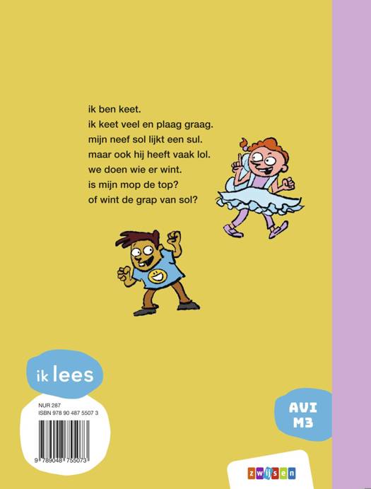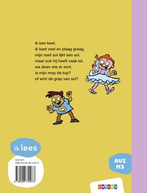 ik ben keet. ik keet veel en plaag graag. mijn neef sol lijkt een sul. maar ook hij heeft vaak lol. we doen wie er wint. is mijn mop de top? of wint de grap van sol?