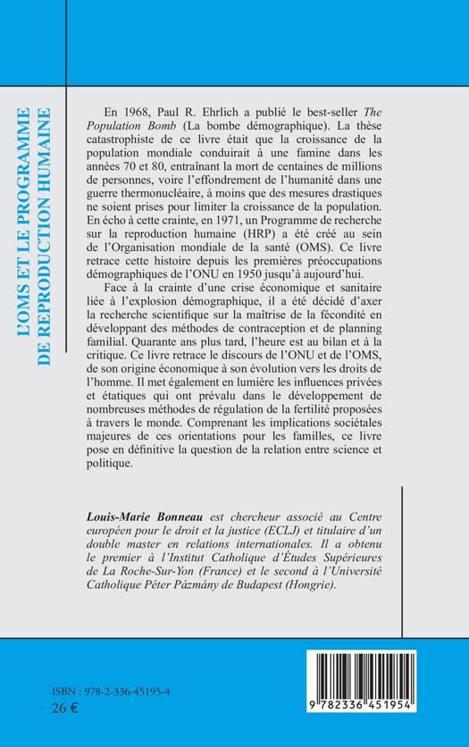 En 1968, Paul R. Ehrlich a publié le best-seller The Population Bomb (La bombe démographique). La thèse catastrophiste de ce livre était que la croissance de la population mondiale conduirait à une famine mondiale, voire à l'effondrement de l'humanité dans une guerre thermonucléaire, à moins que des mesures drastiques ne soient prises. En écho à cette crainte, en 1971, un Programme de recherche sur la reproduction humaine (HRP) a été créé au sein de l'Organisation mondiale de la santé (OMS). Ce livre retrace cette histoire de 1950 à aujourd'hui. Face à la crainte d'une crise économique et sanitaire liée à l'explosion démographique, il a en effet été décidé d'axer la recherche scientifique sur la maîtrise de la fécondité par des méthodes de contraception et de planning familial. Quarante ans plus tard, l'heure est au bilan et à la critique. Ce livre retrace le discours de l'ONU et de l'OMS, de son origine économique à son évolution vers les droits de l'homme. Il met en lumière les influences privées et étatiques qui ont prévalu dans les mesures de régulation de la fertilité proposées à travers le monde.