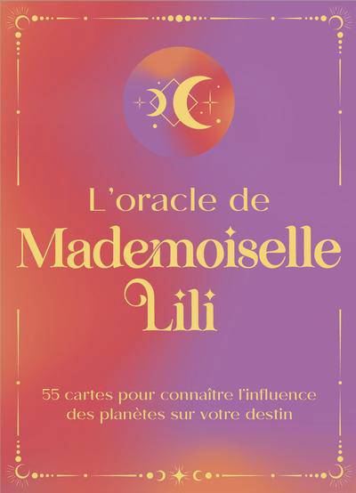 L'oracle de Mademoiselle Lili Mademoiselle Lili vous invite à découvrir les messages célestes portés par les astres. Le jeu de 55 cartes vous révélera la signification astrologique derrière le mouvement des planètes et la façon dont celles-ci influencent votre destin. Le jeu propose également un amalgame original entre les planètes et les cristaux...