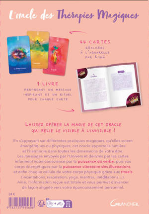 Cet oracle s'appuie sur différentes pratiques magiques, qu'elles soient énergétiques ou physiques, afin d'apporter soin, lumière et harmonie. Chaque carte présente une illustration vibratoire et renvoie à un message et à un rituel (incantation, respiration, yoga, mantra, méditation…). Mêlant des enseignements chamaniques, yogiques, magico-ésotériques ou encore psychocorporels, les rituels complètent le message des cartes et participent à l'accomplissement du processus de thérapie magique qui est alors total et vous permet d'avancer vers votre épanouissement personnel.