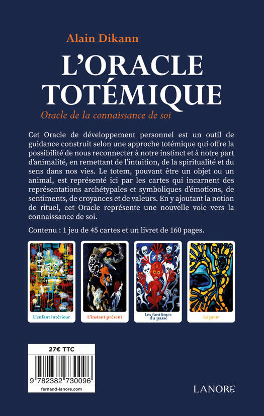 Cet Oracle de développement personnel est un outil de guidance construit selon une approche totémique qui offre la possibilité de nous reconnecter à notre instinct et à notre part d’animalité, en remettant de l’intuition, de la spiritualité et du sens dans nos vies. Le totem, pouvant être un objet ou un animal, est représenté ici par les cartes qui incarnent des représentations archétypales et symboliques d’émotions, de sentiments, de croyances et de valeurs. En y ajoutant la notion de rituel, cet Oracle représente une nouvelle voie vers la connaissance de soi.